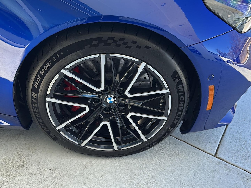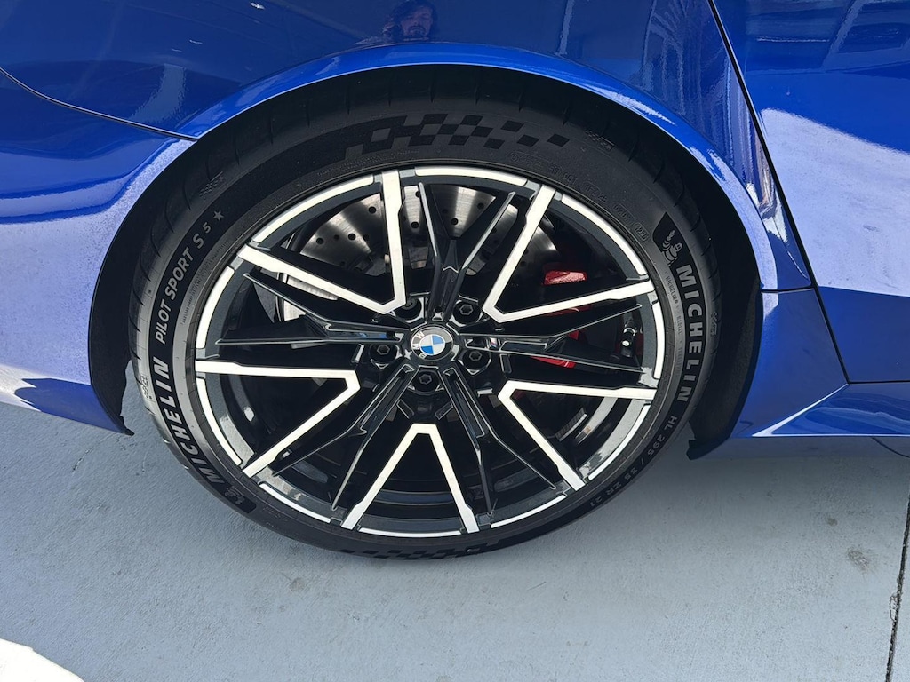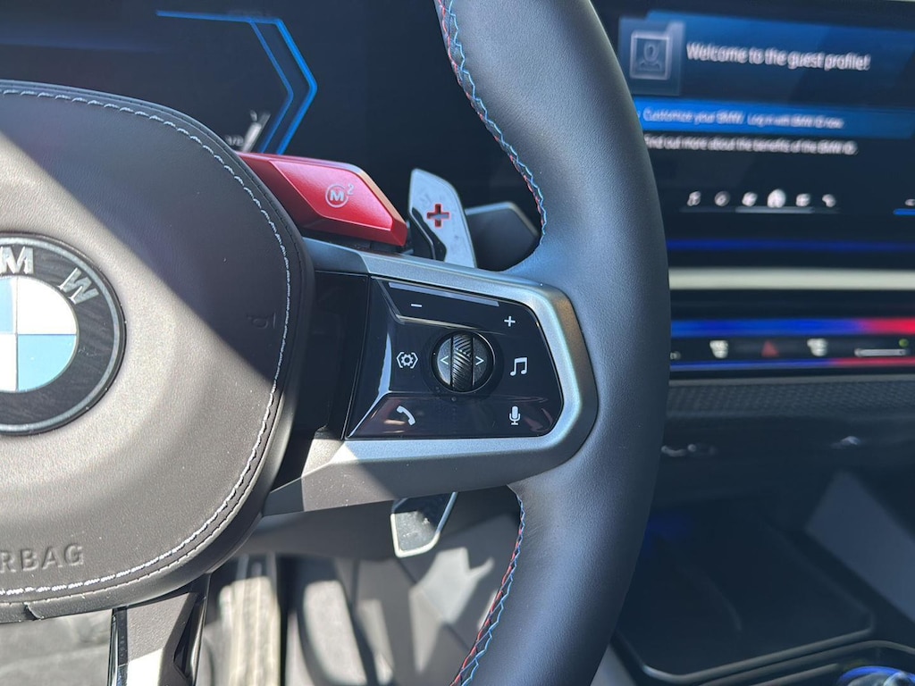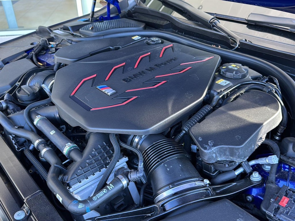 This 2026 BMW M5 Sedan is Marina Bay Blue Metallic with a Silver/Black Extended Merino Leather Interior. It comes very well equipped with a Driving Assistance Professional (Driving Assistant Professional, Traffic Jam Assistant, Lane Change Assistant, Partial Automated Driving), Executive Package (BMW Iconic Glow Kidney Grille, Power Rear Sunshade and Rear Side Window Shade, Front Ventilated Seats, Front and Rear Heated Seats, Interior Camera, Parking View w/ 3d View, Parking Assistant Plus), Carbon Fiber Silver Thread High Gloss Trim, 20"/21" M Dual-Spoke Dark Grey Alloy Wheels, M Drive Professional, Comfort Access Keyless Entry, Hi-Fi Sound System, Automatic Transmission, Navigation System, ConnectedDrive Services, Connected Package Pro, Universal Garage Door Opener, Floor Mats, Tire Pressure Monitor, Heated Steering Wheel, Apple CarPlay/Android Auto Compatibility, Remote Services, Wireless Charging, Decoding for No-Dazzle High Beams, Adaptive Full LED Lights, M Drivers's Package, M Compound Brakes with Red Calipers, Mobility Kit, NEMA 5-15/14-50 Adapter Bundle, Flexible Fast Charger, Active Park Distance Control with Side Protection, Personal eSIM 5G, Wireless Device Charging, Speed Limit Assistant, Travel and Comfort System, M Seat Belts, Active Blind Spot Detection, Foward Collision Mitigation, Lane Keeping Assistant, and Daytime Driving Lights. This 2026 BMW M5 comes with the balance of a BMW Limited Mileage Warranty with coverage until 11/24/2029 or 50,000 miles. Please ask for Internet Sales to receive this special internet offer!