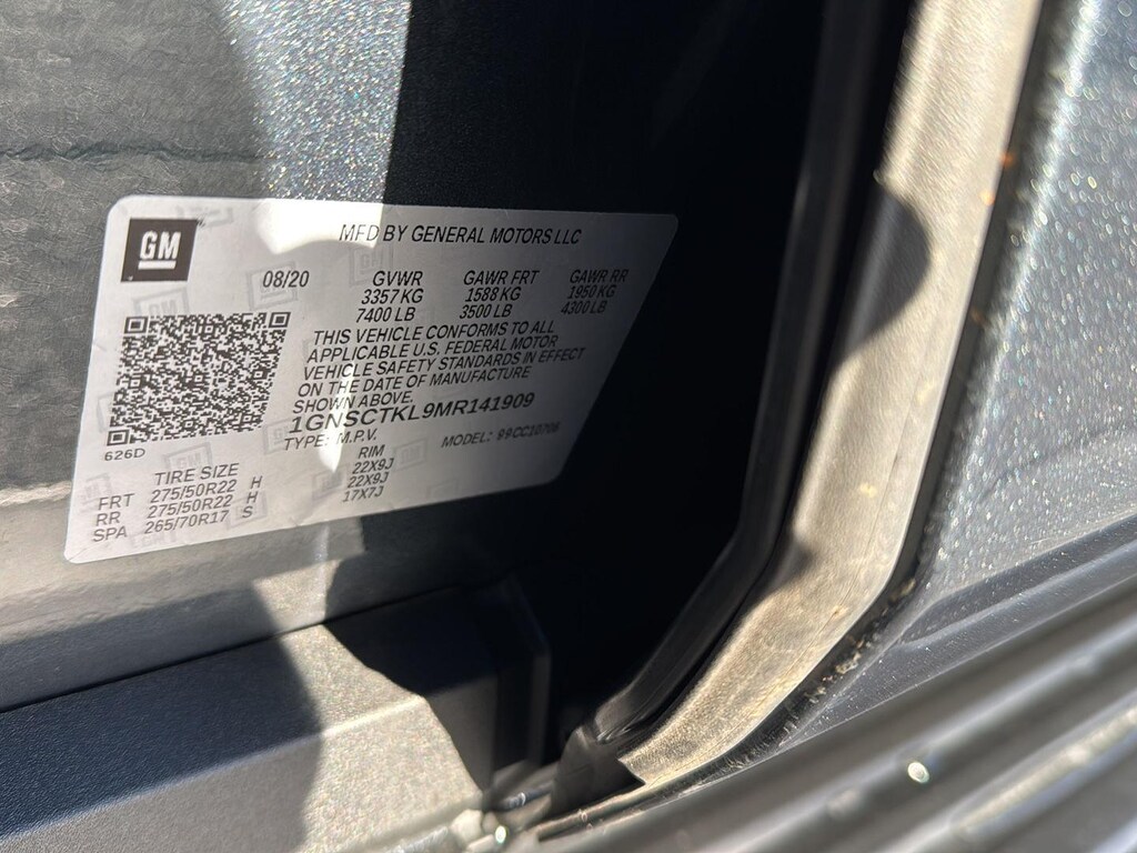EMISSIONS, FEDERAL REQUIREMENTS, ENGINE, 6.2L ECOTEC3 V8, TRANSMISSION, 10-SPEED AUTOMATIC, GVWR, 7400 LBS. (3357 KG), REAR AXLE, 3.23 RATIO, WHEELS, 22 X 9 (55.9 CM X 22.9 CM) STERLING SILVER PREMIUM PAINTED, BLACK, SEATS, FRONT BUCKET, JET BLACK, PERFORATED LEATHER SEATING SURFACES 1ST AND 2ND ROW, AUDIO SYSTEM, CHEVROLET INFOTAINMENT 3 PREMIUM SYSTEM WITH CONNECTED NAVIGATION, 10.2 DIAGONAL HD COLOR TOUCHSCREEN, BUILDABLE ORDER CONFIRMATION