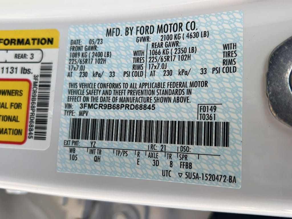 ENGINE: 1.5L ECOBOOST, OXFORD WHITE, EBONY, UNIQUE CLOTH FRONT BUCKET SEATS