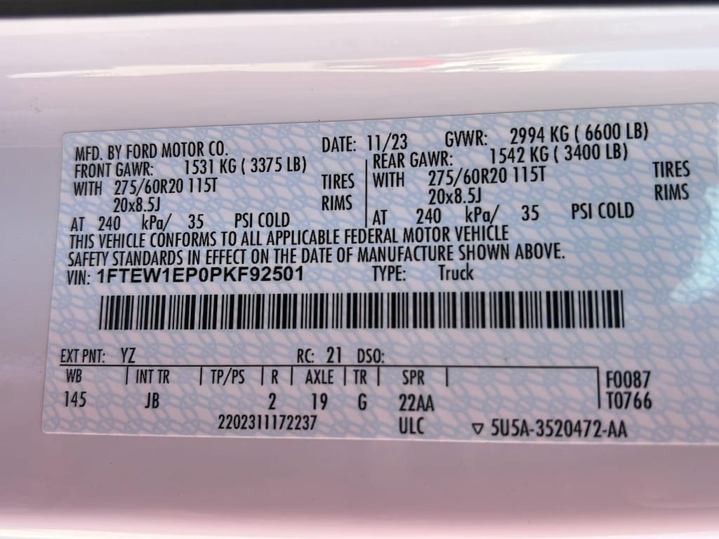 ENGINE: 2.7L V6 ECOBOOST, OXFORD WHITE
