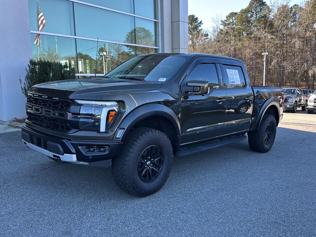 This 2024 Ford F-150 Raptor 4x4 Super Crew has a 3.5L V6 EcoBoost Engine and is Shelter Green Metallic with Black Leather Interior and 20,903 miles. It comes very well equipped with a 10-Speed Electronic Automatic Transmission, Optional Equipment Includes: SYNC 4 AppLink/Apple CarPlay/Android Auto Smart Device Wireless Mirroring, Mobile Hotspot (WiFi on the Fly by (Subscr.), Equipment Group 801A (Raptor Series - Leather Trimmed Seats, Bang and Olufssen Unleashed Sound System, B&O Play Premium Audio System, 17" Cast Aluminum Wheels, Electronic Locking with 4.10 Axle Ratio), Spray-In Bed Liner ($595), Twin Panel Panoramic Moonroof with Map Lights and Moonroof Switches ($1,495), Pro Trailer Back Up Assist, Pro Trailer Hitch Assist, Reverse Sensing and Rearview Camera, Leather Bucket Seats w/ Console, Raptor Branded Floor Mats, Raptor Unique Center Stack 2nd Row Heated Seats, Heated Leather Wrapped Steering Wheel, Lane Departure Prevention, Forward Collision Mitigation, Pedestrian Impact Prevention, Power Glass Heated Sideview Mirrors, LED Sideview Mirror Spotlights, 4.10 Front Axle with Torsen Differential, Integrated Trailer Brake Controller, 360 Degree Camera, LED Box Lighting, 12" Productivity Screen, Intelligent Access with Push-Button Start, Dual-Zone Electronic Automatic Temperature Control, Mobile Office Package, Connected Navigation Integrated Navigation System w/Voice Activation, Memory System (Seat, Pedals, Exterior Mirror), Power-Adjustable Pedals, Head Up Display, Power Sliding Rear Window, Heated Leather Front Seats, Remote Start System, Power/Tilt Steering Column, Universal Garage Door Opener, SiriusXM Radio (subscr.), Power Locks and Windows, Intelligent Access w/ Push Button Start, Lane Keeping System, SYNC4 w/ 12" Screen w/ App Links, Rear View Camera, Trailer Sway Control, Power Tailgate Lock, Perimeter Alarm, Tire Pressure Moniter System, Daytime Running Lamps, Rear Privacy Glass, Adaptive Cruise Control, and Traction Control, Please ask for Internet Sales to receive this special internet offer!