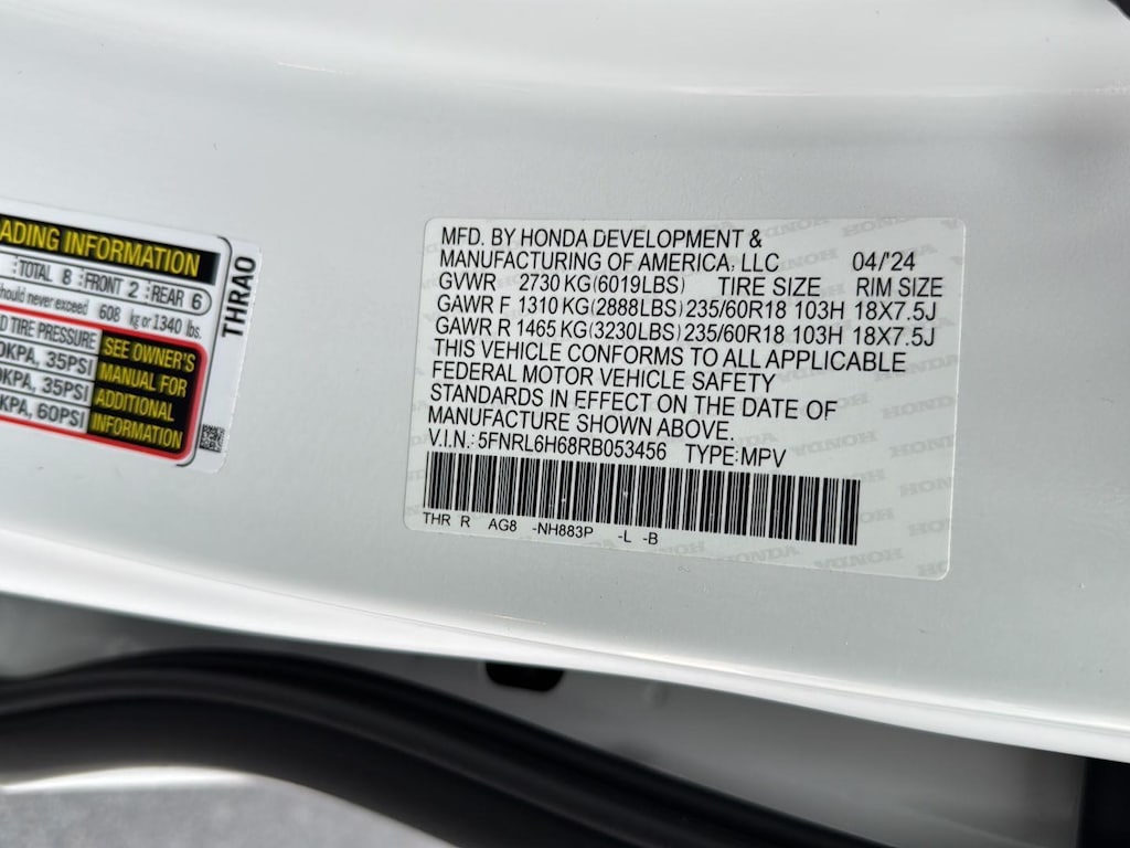 Tires: 235/60R18 103H All-Season
