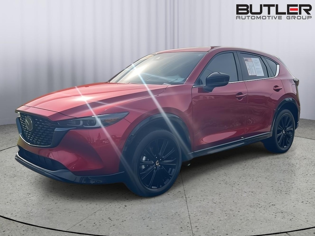 Meet the 2023 Mazda CX-5 2.5 Turbo AWD in the stunning Soul Red Crystal Metallic - a turbocharged SUV that blends sharp styling, premium comfort, and top-tier safety into one exceptional package.