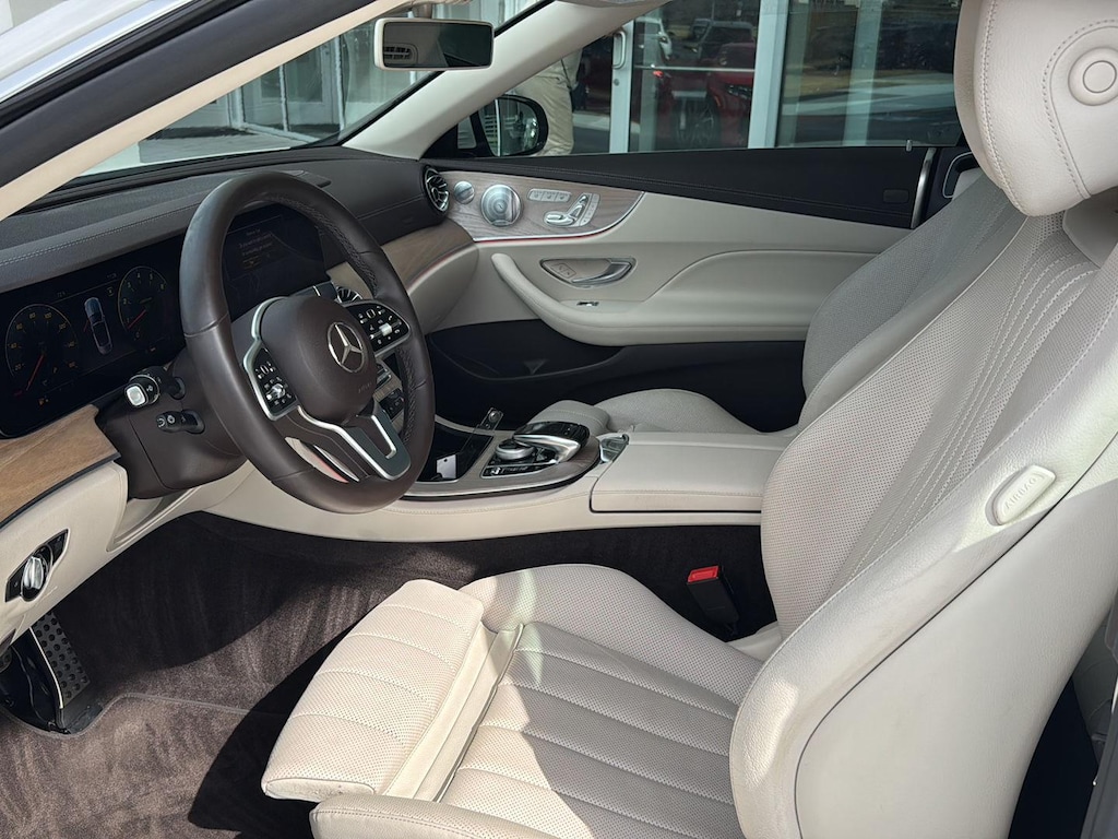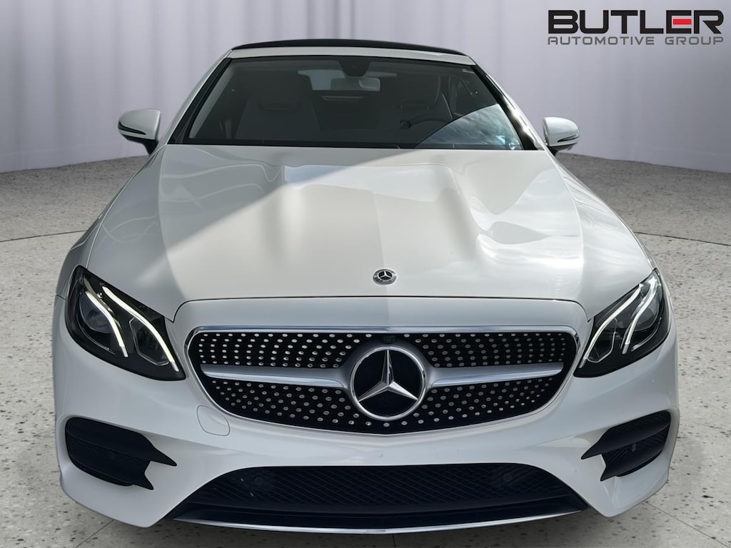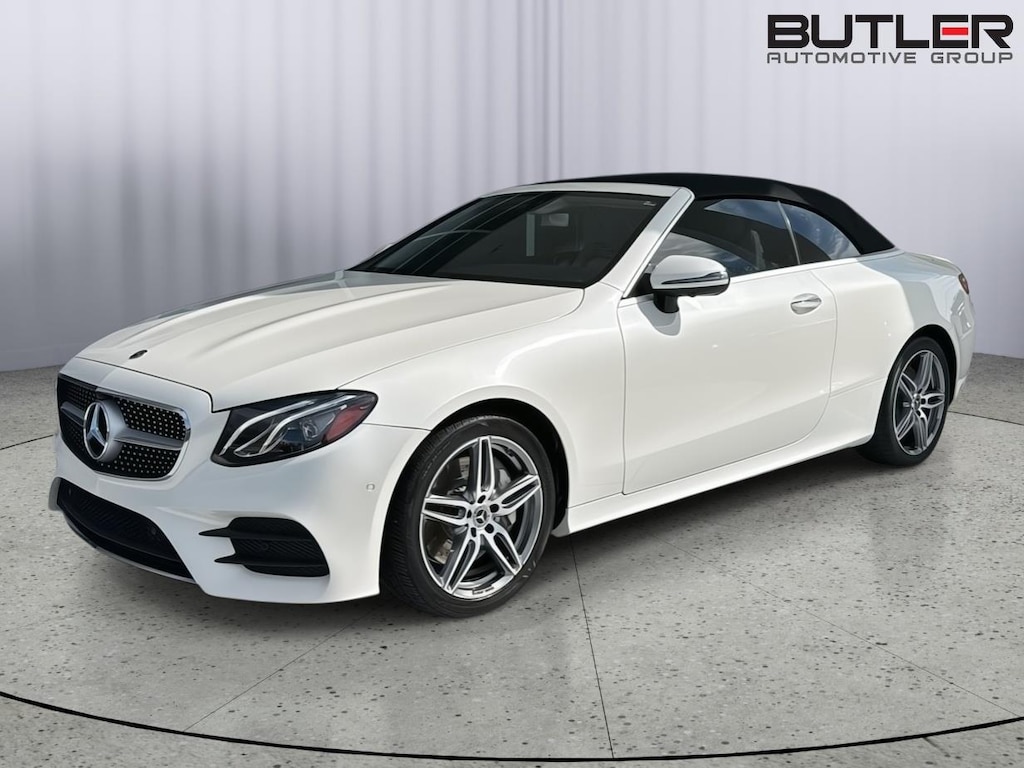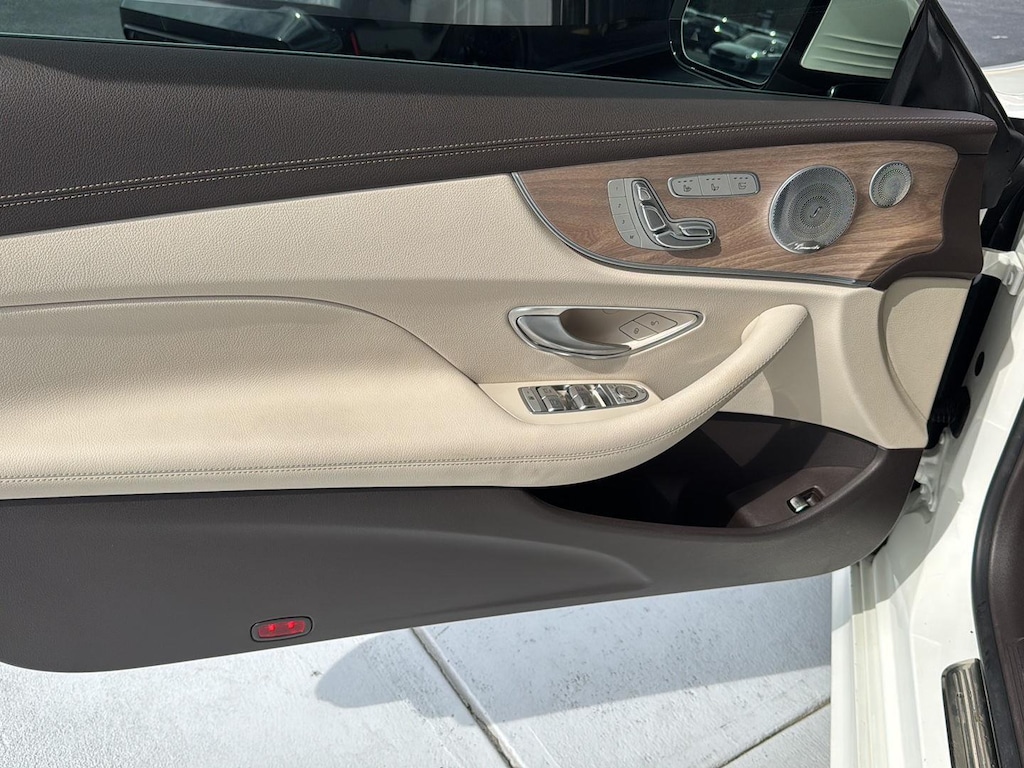 This 2020 Mercedes Benz E450 4Matic Cabriolet has a V6-Cylinder Engine and is Designo Diamond White with a Macchiato Beige/Brown Leather Interior and 44,326 miles. This Mercedes Benz E450 Cabriolet comes very well equipped with a 9-Speed Automatic Transmission, Natural Grain Light Brown Elm Wood Trim, Parking Assistance Package ($1,290 - Active Parking Assist, Surround View Camera System), AMG Line ($2,500 - Brushed Aluminum Sport Pedals w/ Rubber Studs, AMG Floor Mats, AMG Body Styling), Designo Diamond White Package ($1,515), Heated Steering Wheel ($250), Heated and Active Ventilated Front Seats ($450), Illuminated Star ($450), Forward Collision Mitigation, Driver Monitoring Alert, Active Brake Assist with Autonomous Emergency Braking, Burmester Surround Sound System with 13 Speakers, 2 LCD Monitors in the Front, LED Brake Lights, Power Door Locks, Power Mirrors, Automatic High-Beam Headlights, Power Front Seats w/Memory, Power/Tinted Windows, Automatic Driver/Passenger Climate Control, Backup Camera, Traction Control, Homelink Garage Door Transmitter, SiriusXM (by subscr.), 19" AMG Twin 5-Spoke Wheels ($500), Wheel Locking Bolts ($150), and Cruise Control. Please ask for Internet Sales to receive this Special Internet Offer!