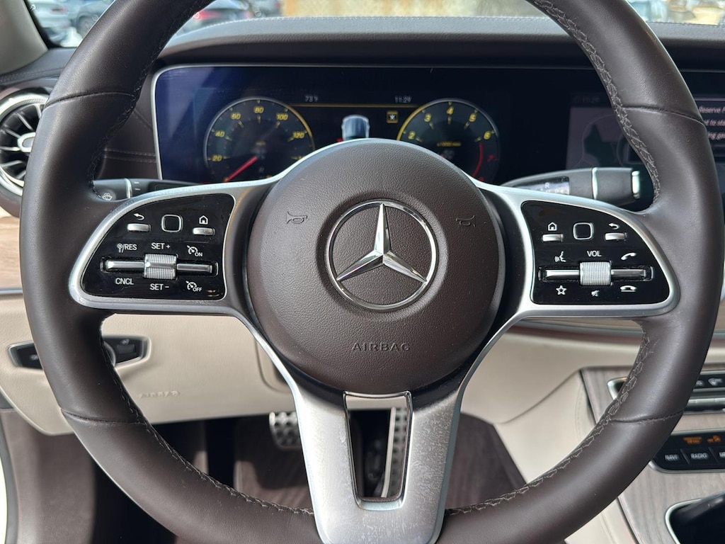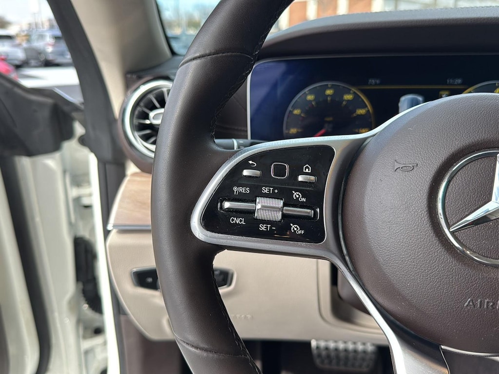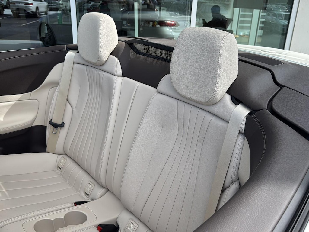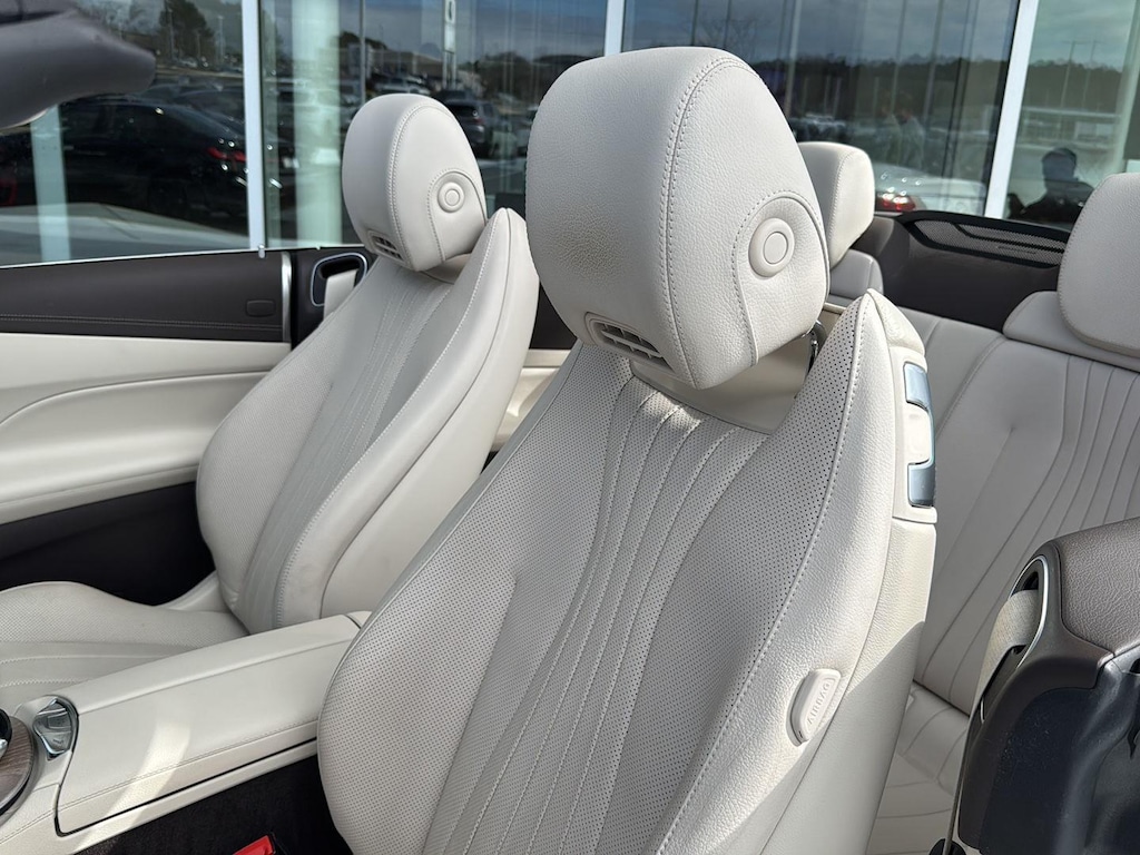 This 2020 Mercedes Benz E450 4Matic Cabriolet has a V6-Cylinder Engine and is Designo Diamond White with a Macchiato Beige/Brown Leather Interior and 44,326 miles. This Mercedes Benz E450 Cabriolet comes very well equipped with a 9-Speed Automatic Transmission, Natural Grain Light Brown Elm Wood Trim, Parking Assistance Package ($1,290 - Active Parking Assist, Surround View Camera System), AMG Line ($2,500 - Brushed Aluminum Sport Pedals w/ Rubber Studs, AMG Floor Mats, AMG Body Styling), Designo Diamond White Package ($1,515), Heated Steering Wheel ($250), Heated and Active Ventilated Front Seats ($450), Illuminated Star ($450), Forward Collision Mitigation, Driver Monitoring Alert, Active Brake Assist with Autonomous Emergency Braking, Burmester Surround Sound System with 13 Speakers, 2 LCD Monitors in the Front, LED Brake Lights, Power Door Locks, Power Mirrors, Automatic High-Beam Headlights, Power Front Seats w/Memory, Power/Tinted Windows, Automatic Driver/Passenger Climate Control, Backup Camera, Traction Control, Homelink Garage Door Transmitter, SiriusXM (by subscr.), 19" AMG Twin 5-Spoke Wheels ($500), Wheel Locking Bolts ($150), and Cruise Control. Please ask for Internet Sales to receive this Special Internet Offer!